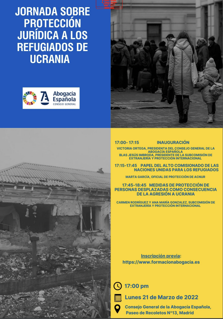 Jornada que lugar el próximo lunes 21 de marzo, a las 17 horas, organizada por la Subcomisión de Extranjería y Protección Internacional del CGAE sobre protección jurídica a los refugiados de Ucrania.
