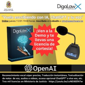 Comparto con vosotros, por si es de vuestro interés, información y documentación relativa al próximo evento sobre Inteligencia Artificial, ChatGPT y la voz, que organiza la entidad DigaLaw X.