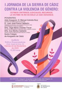 Remitimos información sobre la I JORNADA DE LA SIERRA DE CÁDIZ CONTRA LA VIOLENCIA DE GÉNERO que, con la colaboración de este Ilustre Colegio de Abogados de Cádiz, tendrá lugar el próximo día 24 de noviembre de 2023.