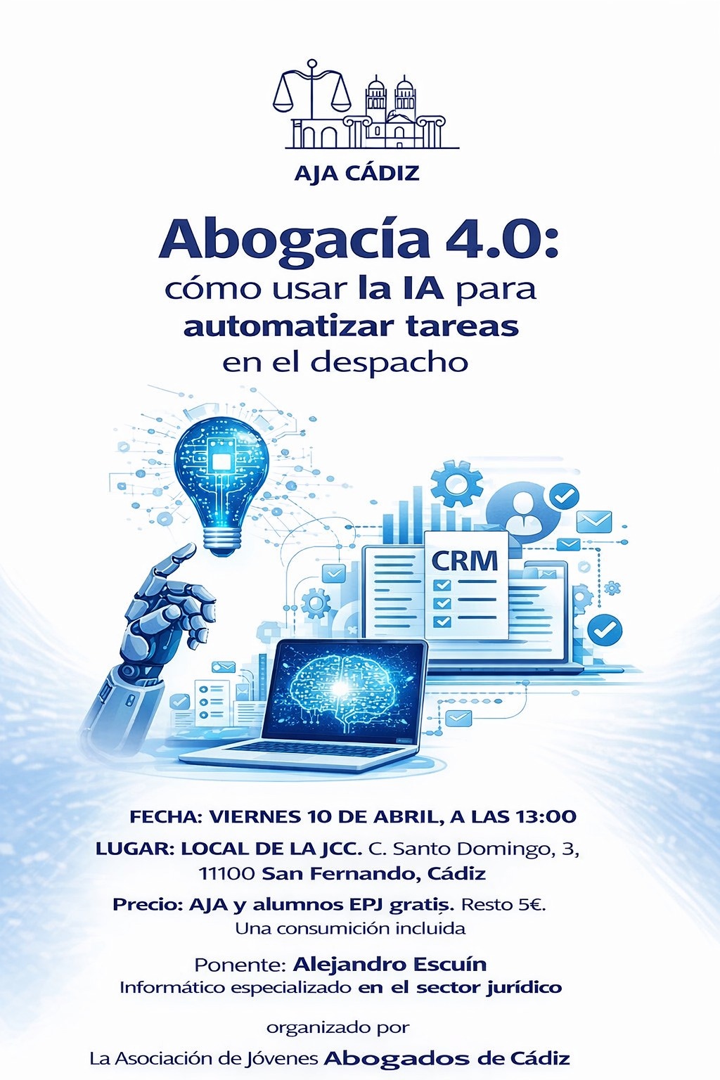 No será una sesión centrada en aprender a utilizar ChatGPT, Gemini u otras plataformas de IA, ni en la redacción automática de demandas, escritos o documentos jurídicos. El interés estará en mostrar cómo convertir necesidades cotidianas en procesos automáticos que ahorren tiempo, reduzcan errores y mejoren la organización del trabajo.