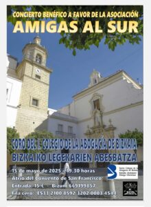 Adjunto remitimos información sobre la actuación que, con fines benéficos, se celebrará por el Coro del Ilustre Colegio de Bizkaia, el próximo día 15 de mayo de 2025, en el Atrio del Convento de San Francisco de Cádiz.