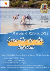 Desde el Ilustre Colegio de Abogados de Cádiz, se ha organizado una “CENA FIN DE AÑO JUDICIAL”, dirigida a todos los colegiados y sus acompañantes que quieran participar.