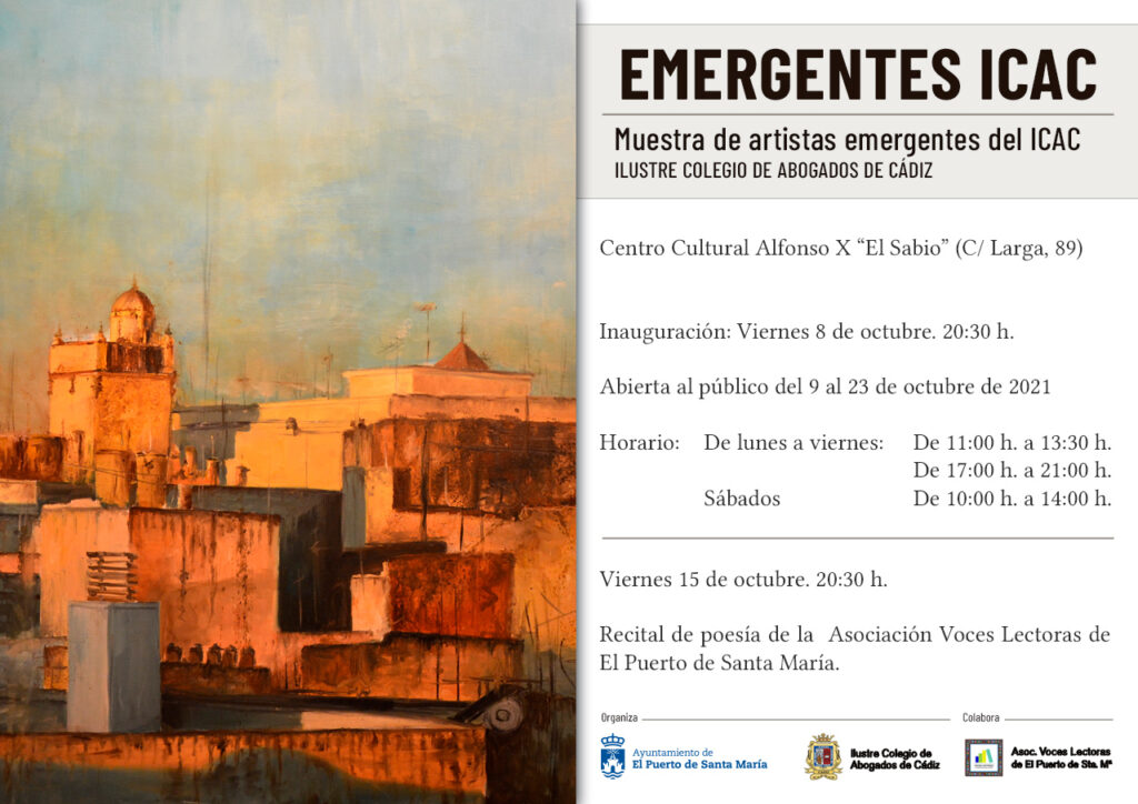 A continuación se adjunta cartel sobre exposición de Artistas Emergentes del ICAC en El Puerto de Santa María.