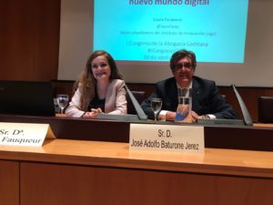 Tras una pausa para el almuerzo de confraternización, dio comienzo la recta final del I Congreso de la Abogacía Gaditana, inaugurando la tarde del viernes la ponencia sobre el ejercicio de la Abogacía, que llevaba por título ‘Las habilidades del abogado en el nuevo mundo digital’. Fue Laura Fauqueur, directora de marketing en el Instituto de Innovación Legal, que fue presentada por José Adolfo Baturone. Intérprete judicial en juicios, se “enamoró” del mundo del Derecho, luego estudió marketing y se especializó en mezclar ambos mundos. Fauqueur habló de cómo situaciones indeseables actuales, como la corrupción, están afectando en perjuicio de la Justicia y en este sentido, reseñó la necesidad de que el abogado sea “un superabogado, más transparente y más conectado”. Fauqueur invitó a los abogados gaditanos a subirse al carro de la tecnología, “lo exige la competencia, la digitalización y los clientes”. Y es que los abogados deben enfrentarse hoy día incluso a delitos relacionados con la tecnología y lo digital. Es por ello que Laura Fauqueur centró su intervención en hablar de todas las herramientas tecnológicas que pueden contribuir a la innovación en la práctica legal.